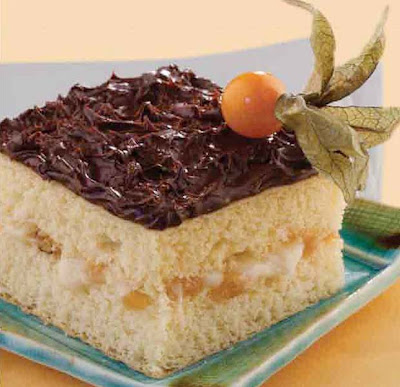2. Espalhe a cobertura de chocolate sobre a superfície do bolo.
